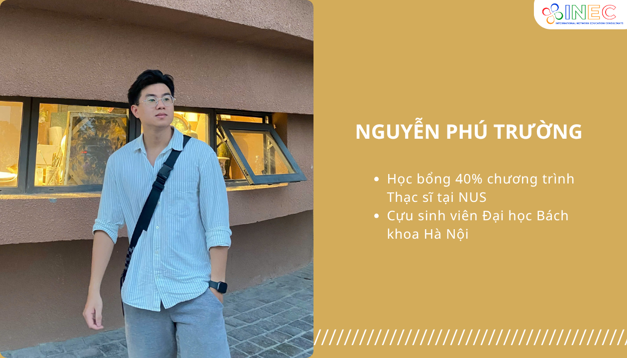 INEC tự hào khi đã đồng hành cùng Trường hạ cánh tại NUS – nơi bạn tiếp tục viết tiếp đam mê công nghệ với chương trình Thạc sĩ Công nghệ tại Khoa NUS-ISS (National University of Singapore – Institute of Systems Science). Với bề dày thành tích học tập và kinh nghiệm nổi bật, Trường đã xuất sắc chinh phục học bổng danh giá đến 40% và gia nhập cộng đồng NUS vào kỳ học tháng 8/2025.